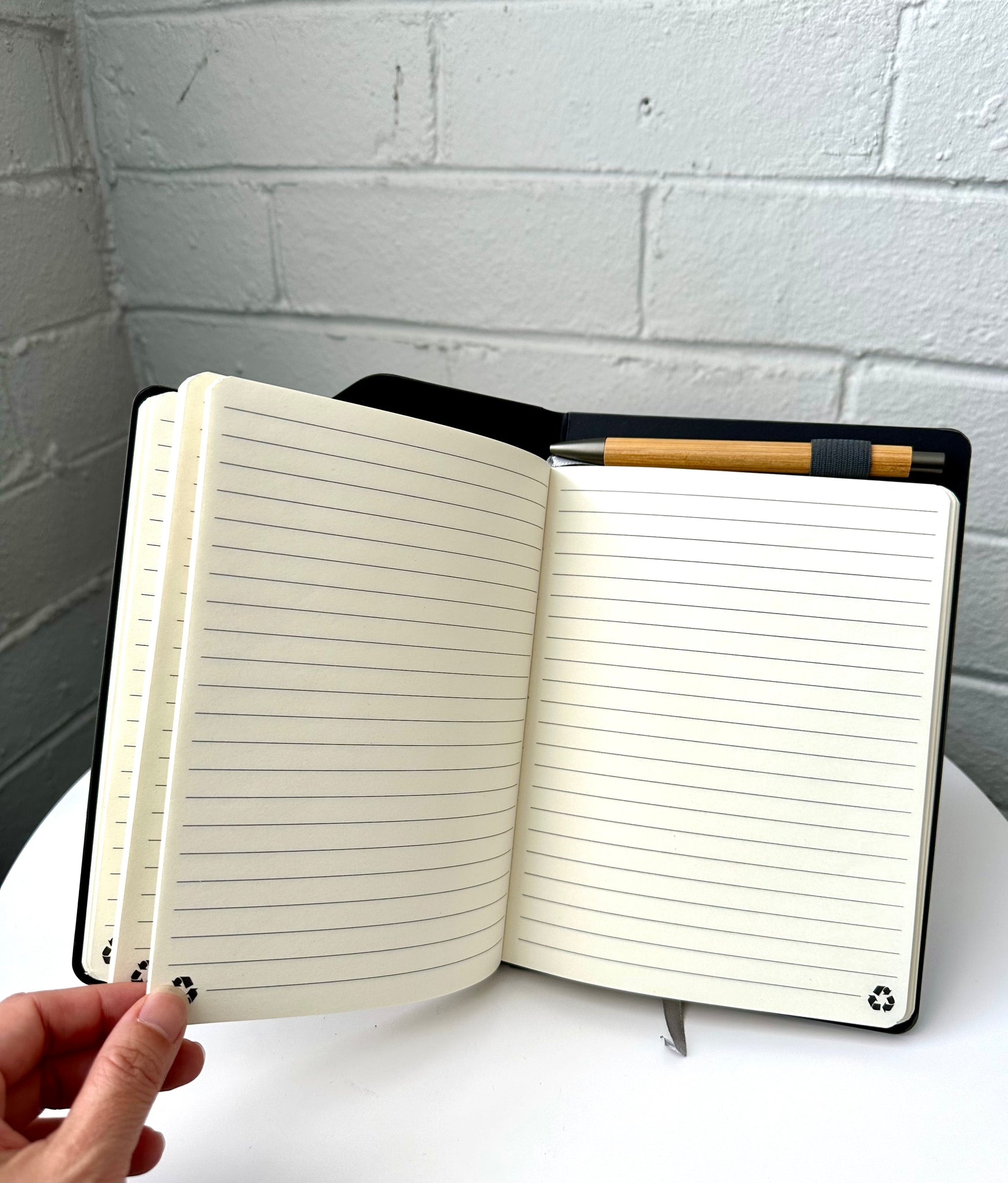 Paired with a sleek bamboo pen, this eco-friendly duo brings sustainability to your everyday routine.
